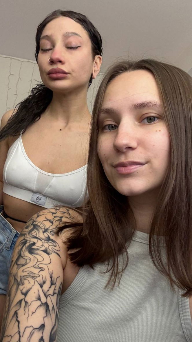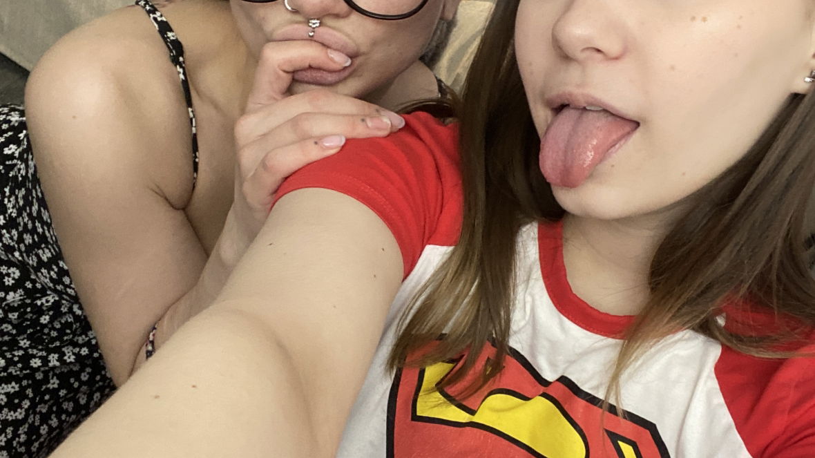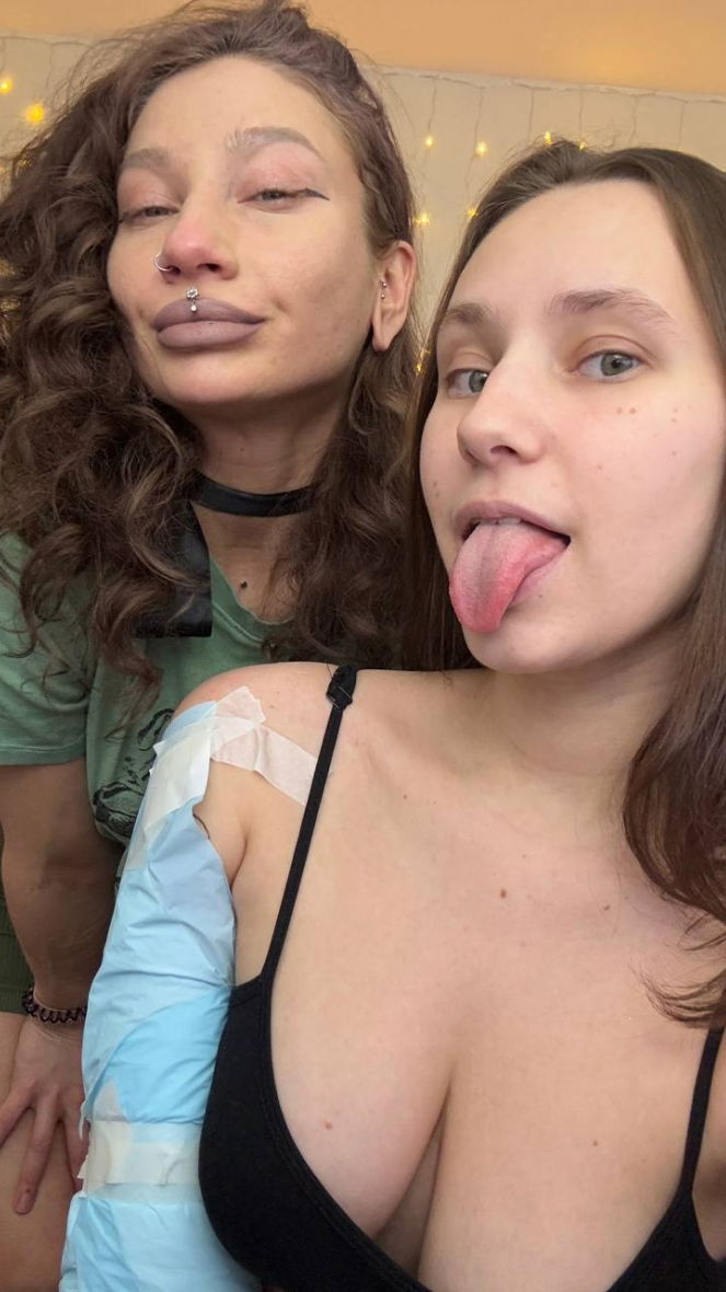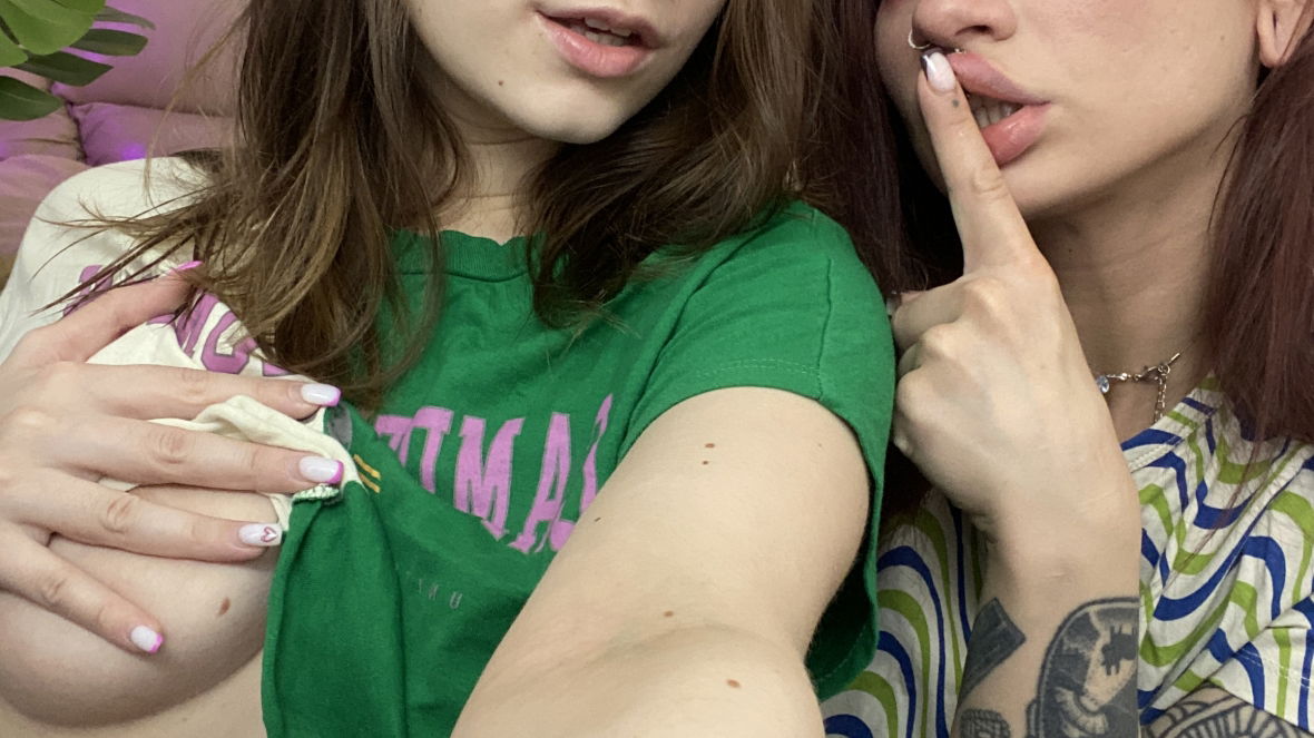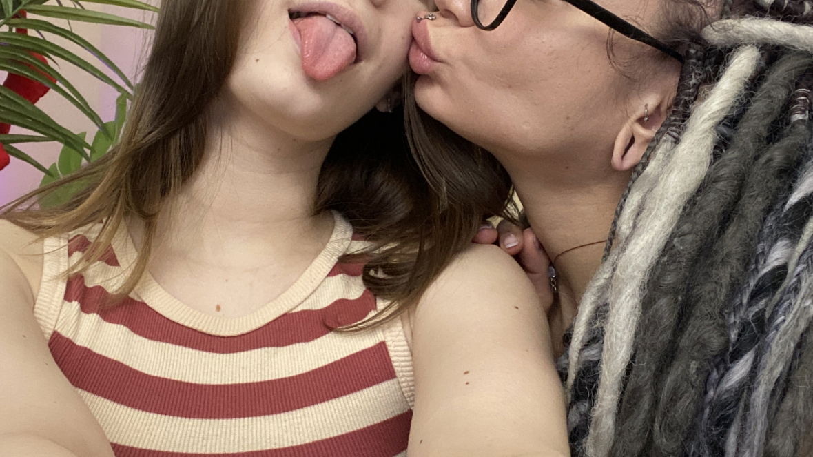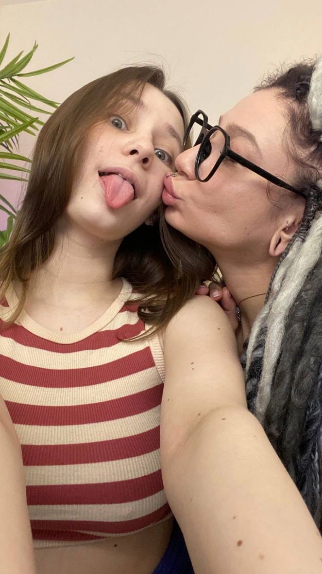 kissing + clamps on + topless